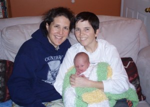 A few weeks ago I blogged about the changes to Washington state birth certificates that would allow my name to go on our daughter’s birth certificate as a “natural” parent from day one. Well, that blessed event has happened–my wife Kris gave birth to our daughter Alexandra on 2-23-11 at 10:07 AM, and the two moms have been blissed out, sleep-deprived, foggy, and mildly alarmed (“Is that what baby poop is supposed to look like?” “Do all babies bray like a goat?” “Could her head fall off if I don’t support it properly?”) ever since.