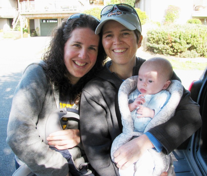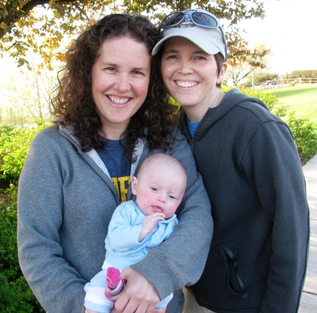 One thing about parenting: Carrying a cute baby out in the public sphere garners far more smiles than I’m used to receiving after twenty years as a gender non-conforming lesbian. My short hair and purposely androgynous clothing–I’m small enough that I can shop in the boys’ section of most clothing stores–often earn me double-takes, particularly in public restrooms where older women especially have looked like they’re about to tell me I’m in the wrong place.
