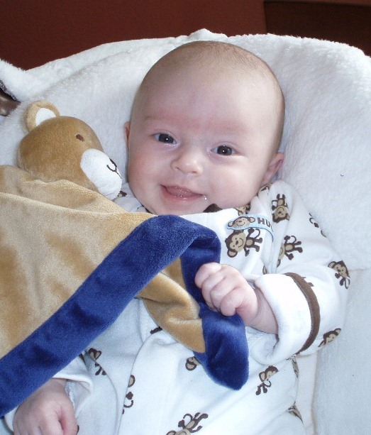 Kris and I are both accustomed to this question because we tend to favor what we believe is non-gender specific clothing, most of which has been donated from friends and family members who have boys. Plus, at three months, Alex still has her grandfather’s follicly-challenged hairline.