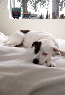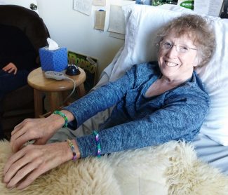 Leila keeping Mom’s feet warm, day 6 of VSED